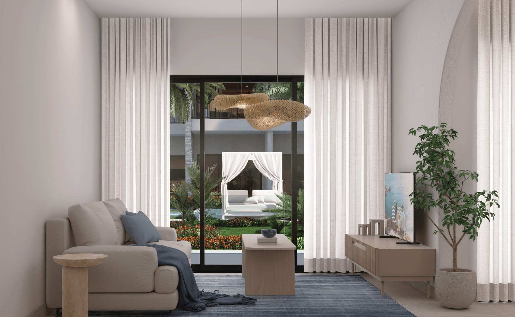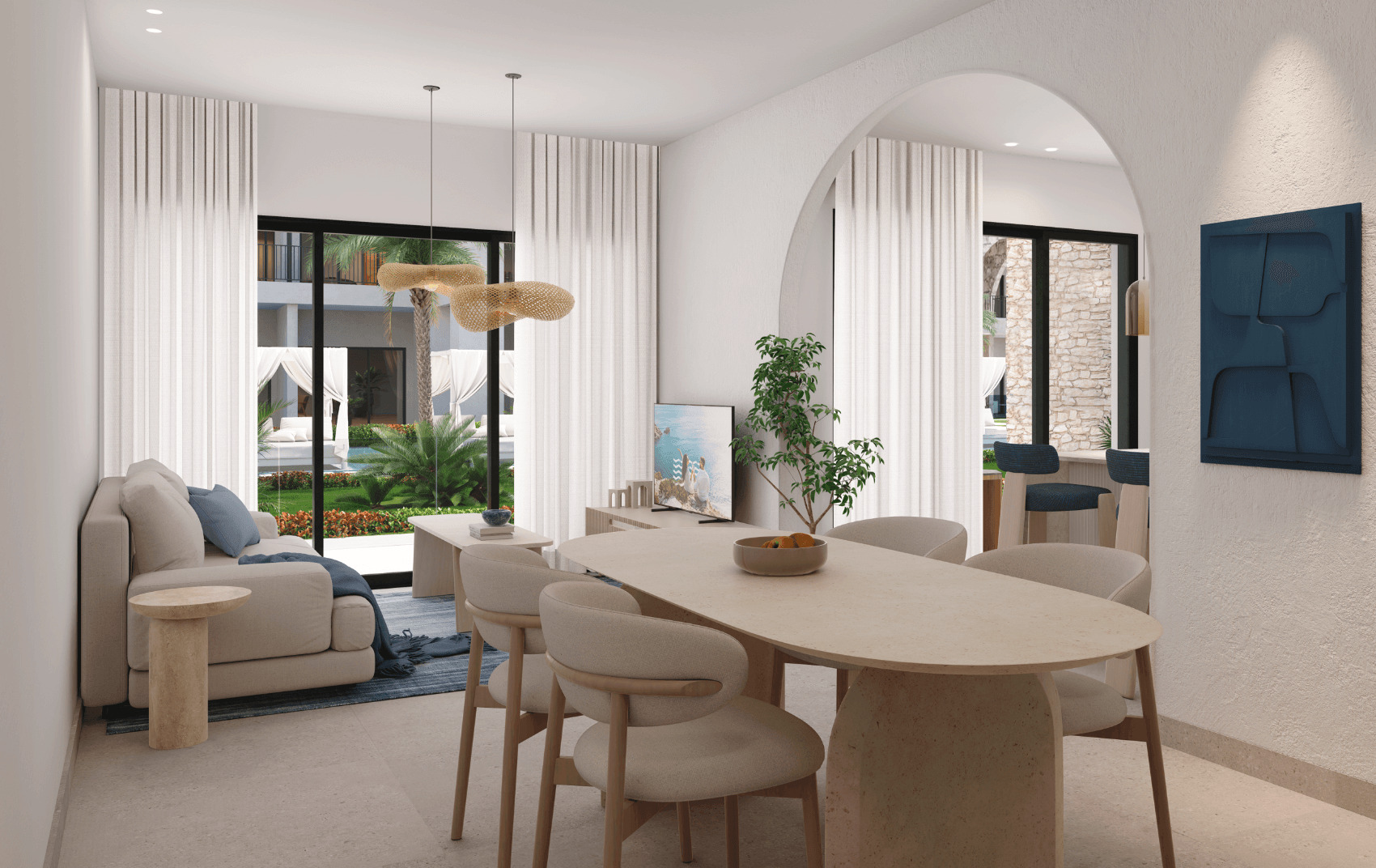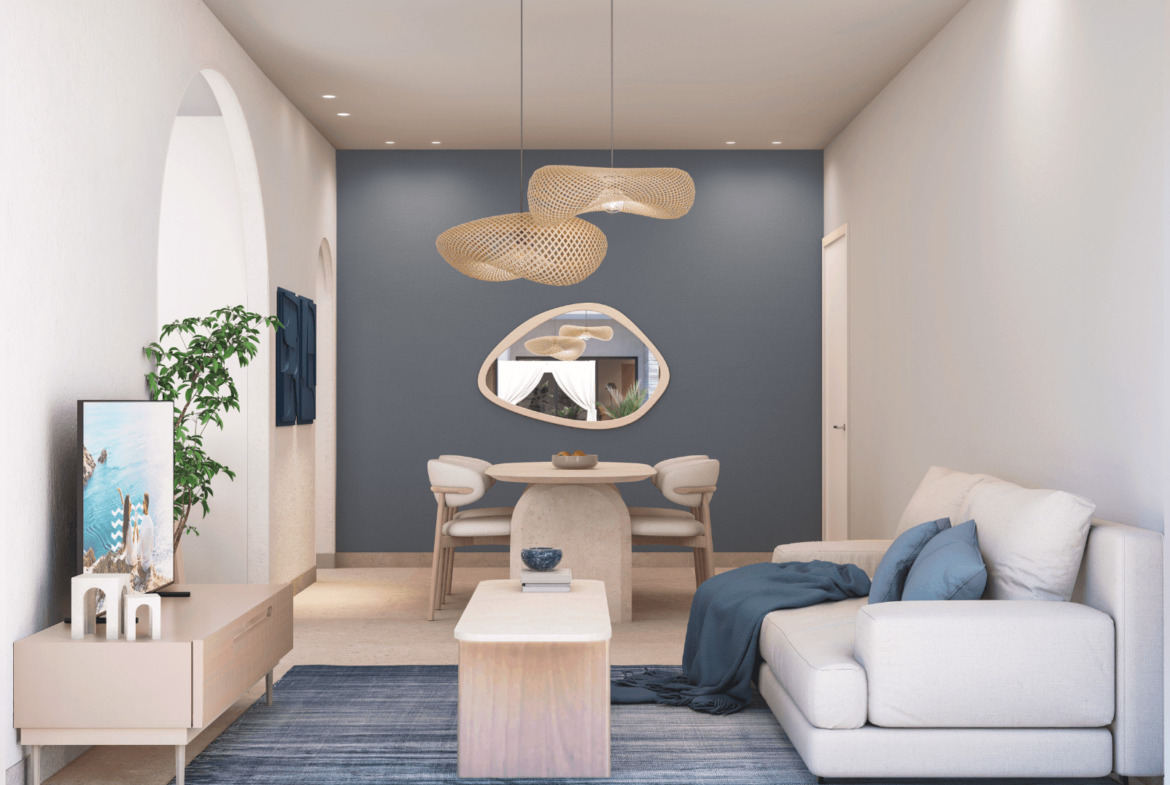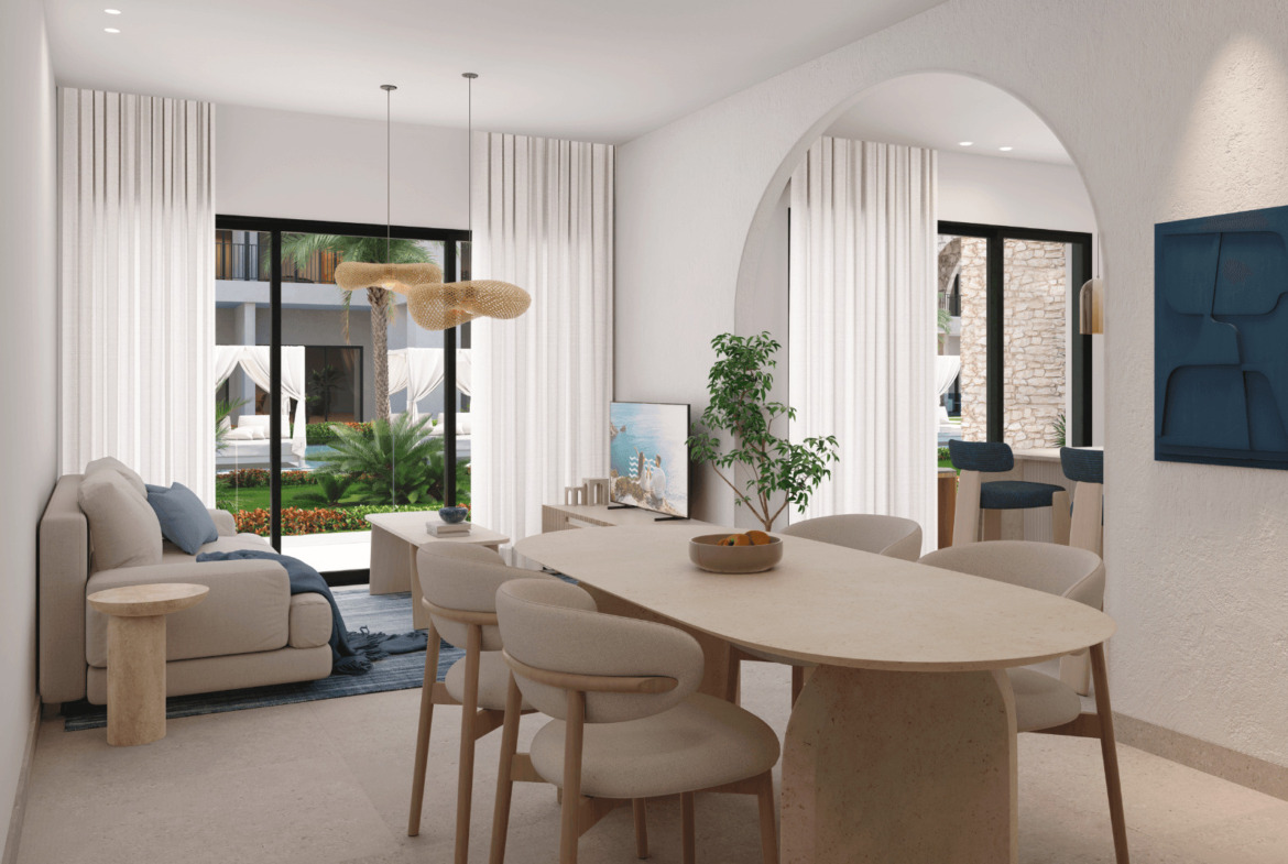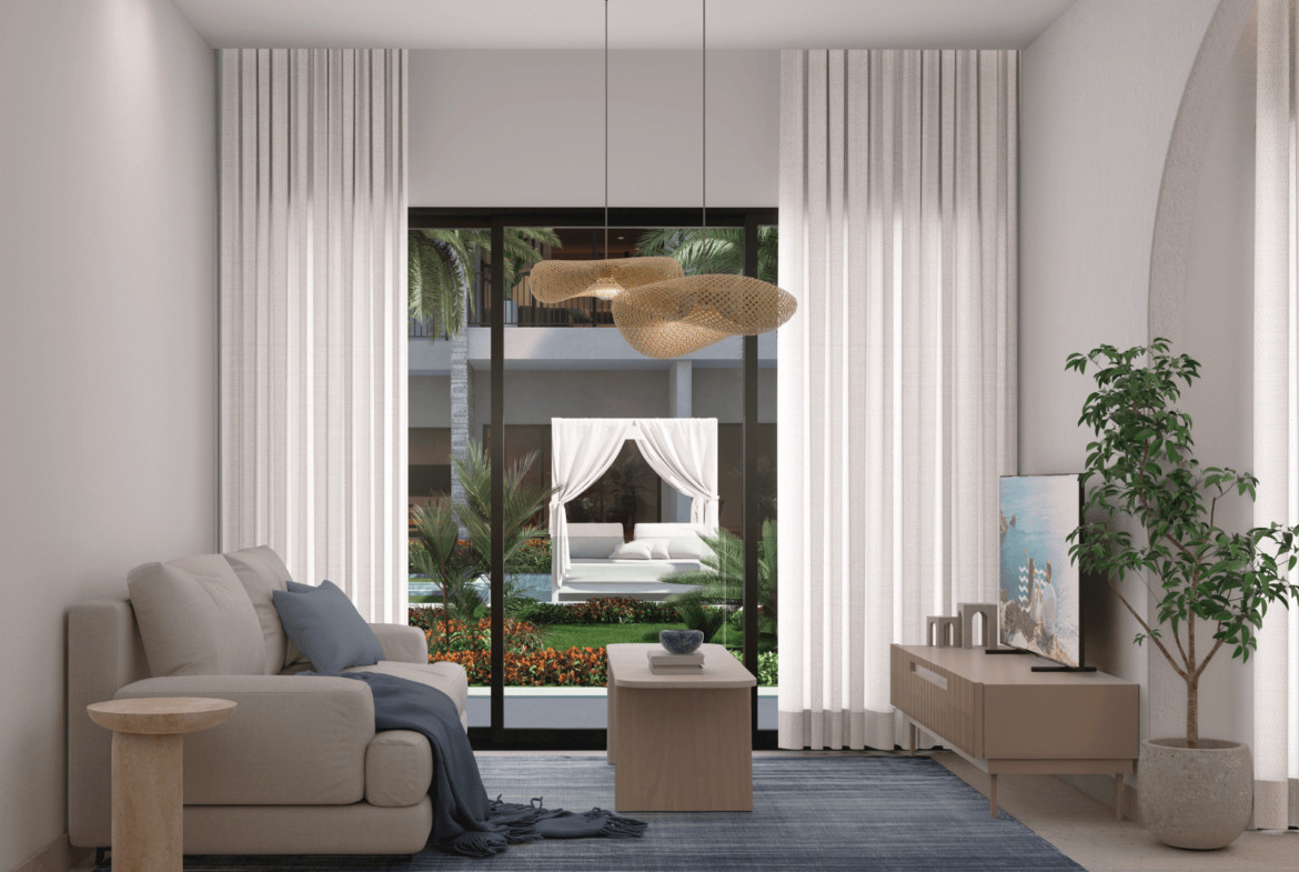 Modernas residencias tipo condo-hotel de 1, 2 y 3 habitaciones, diseñadas con una estética elegante, amplitud, y acabados de lujo. Se entregan totalmente equipadas, con interiores armoniosos que mezclan piedra natural, madera y tonos neutros que evocan serenidad y estilo.
